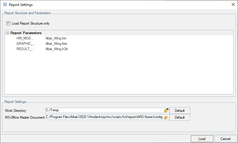 Load Report Structure only checkbox.