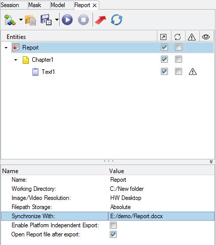 Report property definition for Synchronize