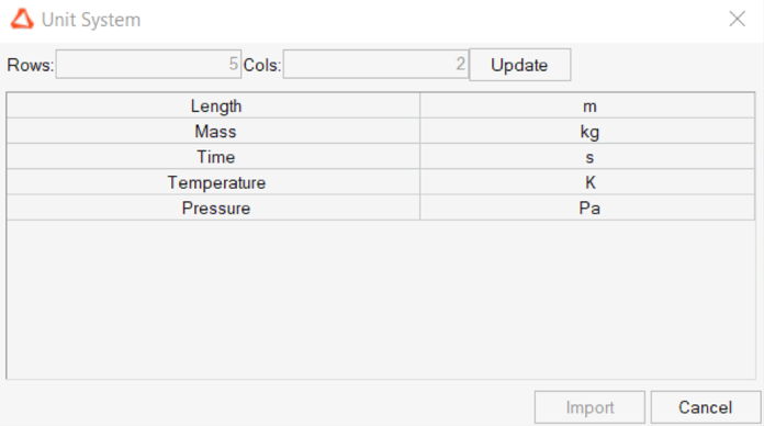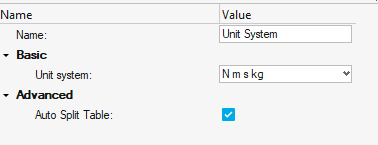 Once executed, a table output for Unit System is generated: