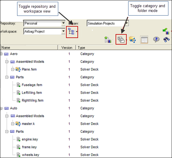 - Unzip SimulationProjects.zip from the HyperWorks Enterprise hwe.zip directory to your library directory, C:\MyLibraries.