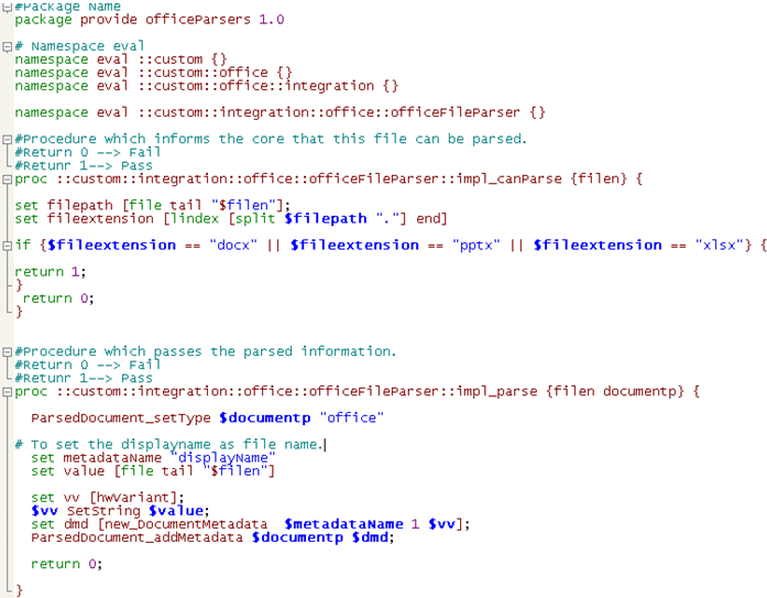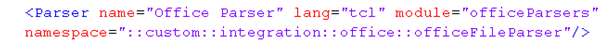 In the previous step you edited the parser.xml file to point to the appropriate Tcl code. Now you will take a look at the parser Tcl code. For simplicity the start package code does not need any editing.