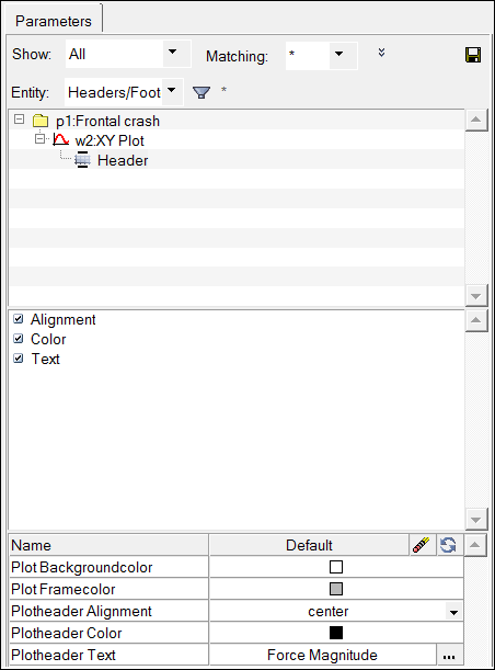 Figure 3. Parameters Browser with Headers/Footers attributes selected