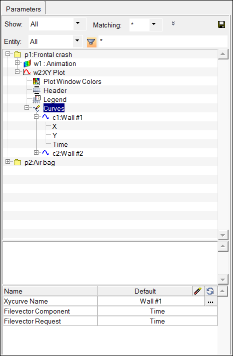 Figure 2. Parameters Browser after selecting a curve attribute to create an automation script parameter