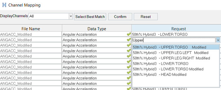 Some options described above are also be available via a context menu if you right-click while one or more fields are selected from the dialog, as shown below. You can select only some of the channels listed and choose Select Best Match from the context menu to sort the currently selected channels. Click Confirm to approve the results.