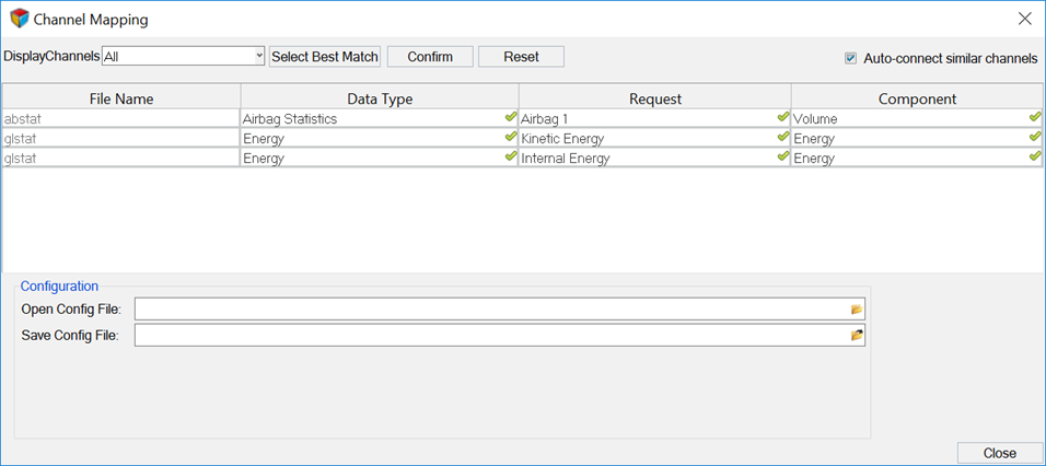 Once the channel mappings are resolved, click Save Config File to save the reconnected channels to configuration file which can be used for future mappings.