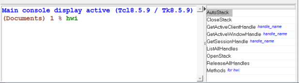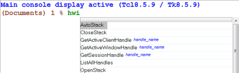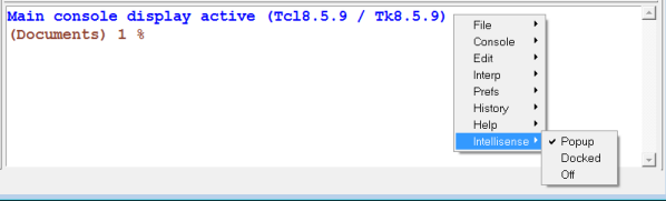 - Popup displays the Tcl/Tk command names within the console, relative to the location of the last line of text in the window. Once you select an API when in popup mode, the Intellisense window is dismissed.