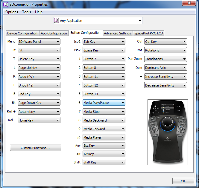 Figure 1. 3Dconnexion Control Panel - SpacePilot Sample Button Configuration (Windows)