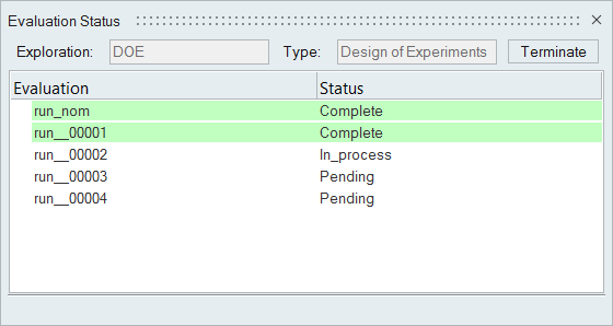 The Evaluation Status dialog opens. Here, you can track the progress of each run.