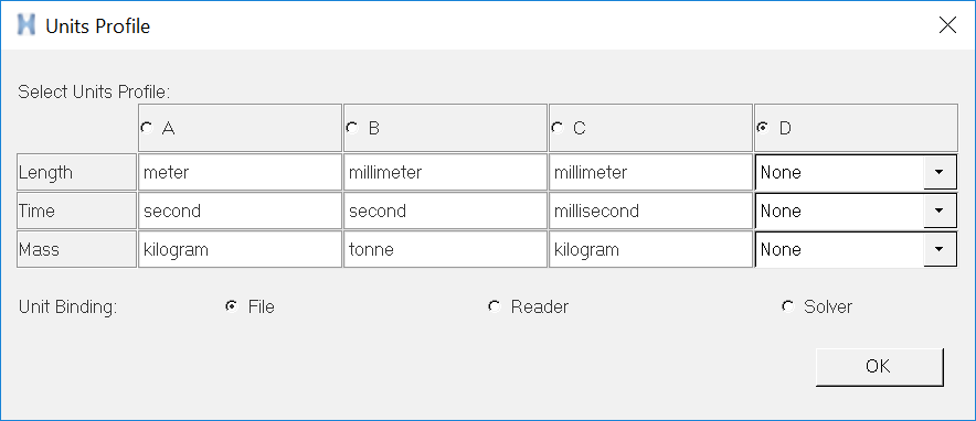 Figure 1. Units Profile dialog
