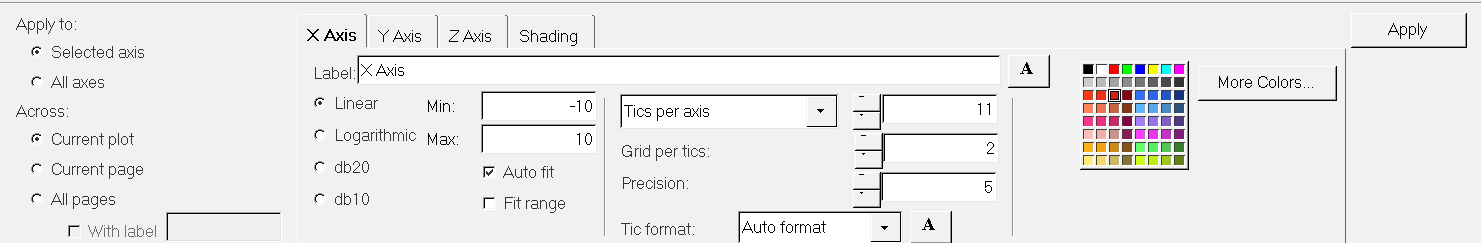 - Located under All Pages, With label only applies each change to the axes that contain the label specified in the With label entry field.