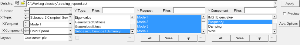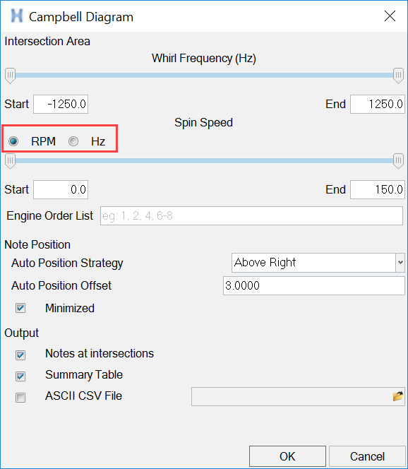 Figure 5. - In the Engine Order List field, enter the intersection values with the eigenmodes for the order lines that you want to display. For example, 1-4. Half orders can also be entered. If you enter 1-4.5, the orders will be displayed as 1, 1.5, 2, 2.5, and so on. If you enter 1-4, whole numbers only will be used.