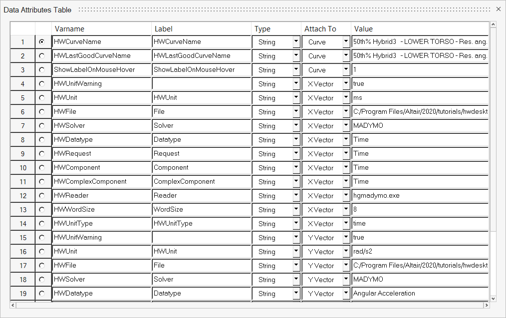 - Displays the Data Attributes Table to access the curve’s metadata.