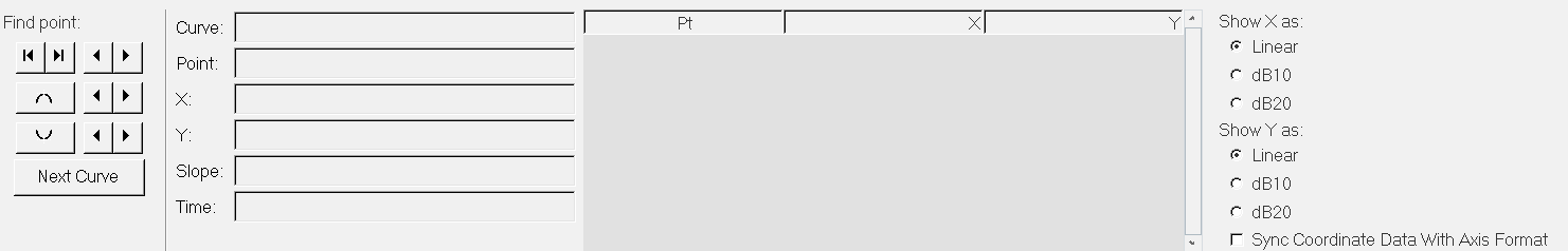 Retrieves individual point data on any curve in the active window. When a point is selected, the point data is displayed on the panel.
