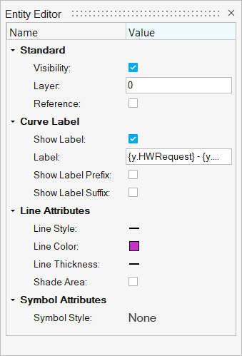 Use the floating Entity Editor to edit attributes for plot entities.