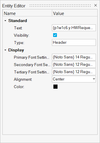 Figure 2. Entity Editor - Headers and Footers