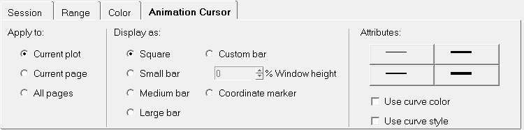 - You can apply the animation cursor attributes to the Current Plot, Current Page, or All Pages.