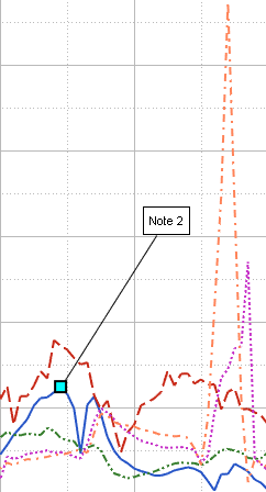 When the mouse is moved away from the note, the icon is displayed again and the note disappears. This allows for greater flexibility over how notes are displayed, and makes plots with multiple notes easier to read. This option also ensures that the attachment points are not obscured for curve-attached notes. The location of the icon in the plot corresponds to the point on the curve to which the note is attached. The mouse over settings are done on a per-note basis, not as a general setting. If notes are in mouse over mode, or represented as an icon in the plot, the notes will be displayed that way in the published session.