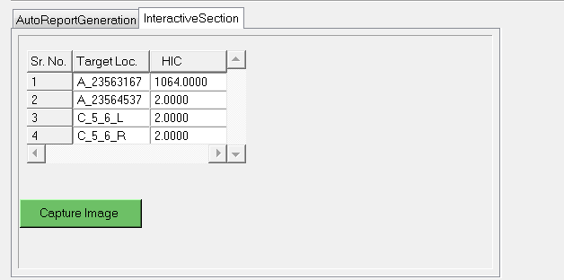 Based on the selected impactor type, a table is inserted in the Interactive Section