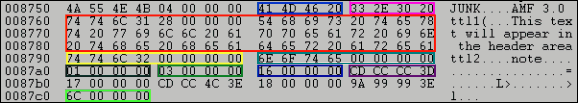 The AMF footer is stored as a JUNK chunk at the very end of the file, as seen in this HEX dump:
