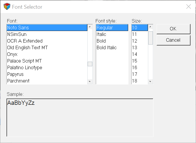 Figure 1. Font Selector - Click OK to implement your font selections.