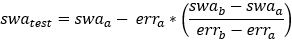 3. The corresponding errors and are calculated and a steering wheel angle, , is chosen by linear interpolation using the following formula:
