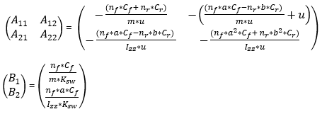 Input driver parameters specify the control priorities of the driver. Vehicle parameters are used to estimate the vehicle’s future states, based on a simple linear bicycle model. The following paragraphs describe vehicle and driver parameters and their effects on the trajectory planning.