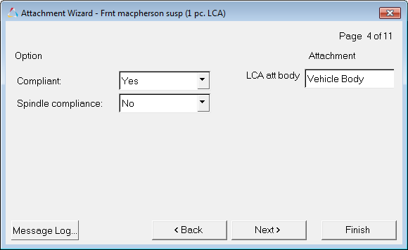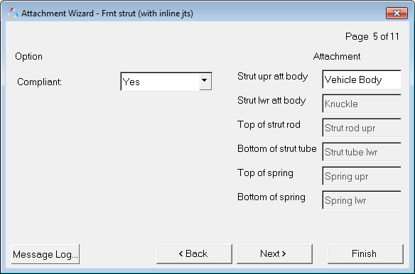 The attachments specified during the assembly process (using the Assembly Wizard dialog) can be modified using the Attachment Wizard, located on the Model menu. The Attachment Wizard dialog guides you through the process of modifying the model attachments.
