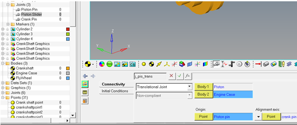 Shown below is the Cylinder 1 assembly which seeks a crank pin attachment point. This attachment (variable p_cp_att) has a “CrankPin” attachment tag. The crank pin point in the crank shaft assembly has a attachment candidate tag that has the value “CrankPin”.