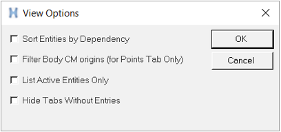 | Filter Body CM origins (for Points Tab Only) | Filter Points that are used as Body CG. |