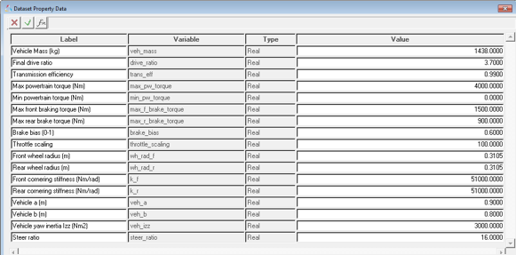 | Vehicle Mass | Real | Value>0 | |