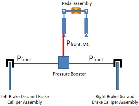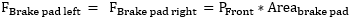- Pressure in rear brake line, PRear = KBrake boost * FRear/AreaMC_rear