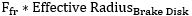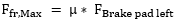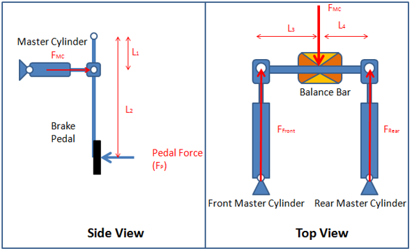 - Force in rear master cylinder, FRear = (1 - BB) * FMC