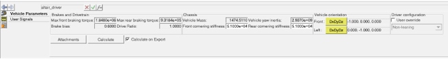 5. Click on Calculate on Export to let the driver calculate the vehicle parameters every time the model is exported. This ensures the driver to update vehicle parameters if any changes are made to the model.
