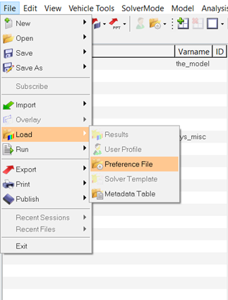 The MBD-Vehicle Dynamics Tools must be loaded as a preference file.