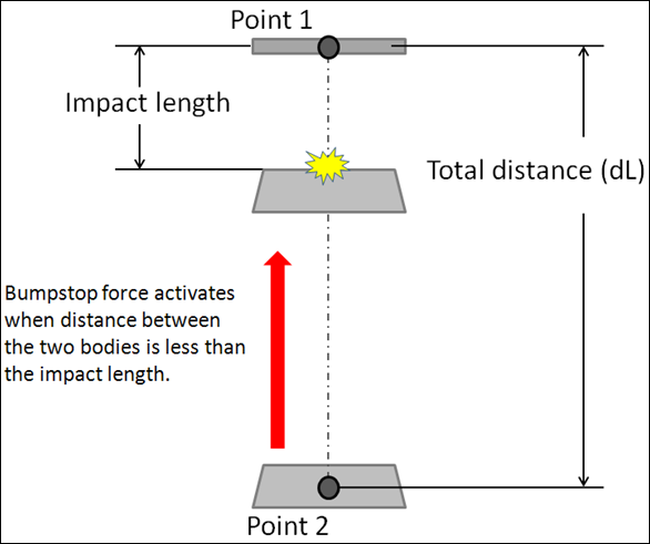 - When the impact length is of value ‘L’, the AutoBumpStop force acts when the distance between the two bodies is less than ‘L’.