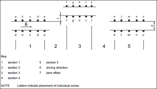 | 7 | 25000 | Distance from end of the first lane change to the start of the second lane change (mm). |