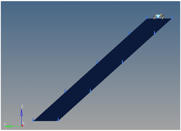 The Power-off in a Straight Line event is designed to work with a full vehicle model that has been built through the Assembly Wizard. The event should attach to the model automatically when added through the Task Wizard. The event can be used with models built manually, as long as the attachment scheme in the event is strictly followed.