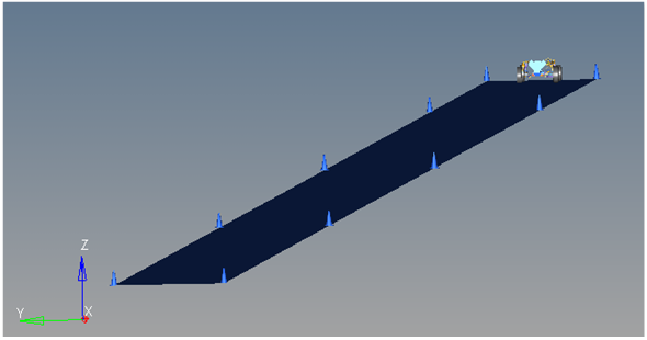 The Straight Line Braking event is designed to work with a full vehicle model that has been built through the MotionView Assembly Wizard. The event should attach to the model automatically when added through the Task Wizard. The event can be used with models built manually, as long as the attachment scheme in the event is strictly followed.