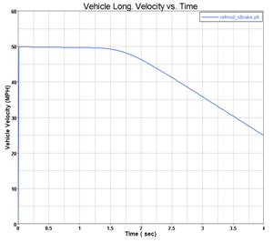 - Vehicle settles into steady state at the initial velocity entered on the event Form (default is 50 mph).