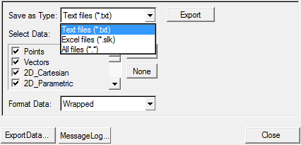 The Export Data dialog allows you to export your data to an Excel or text file.