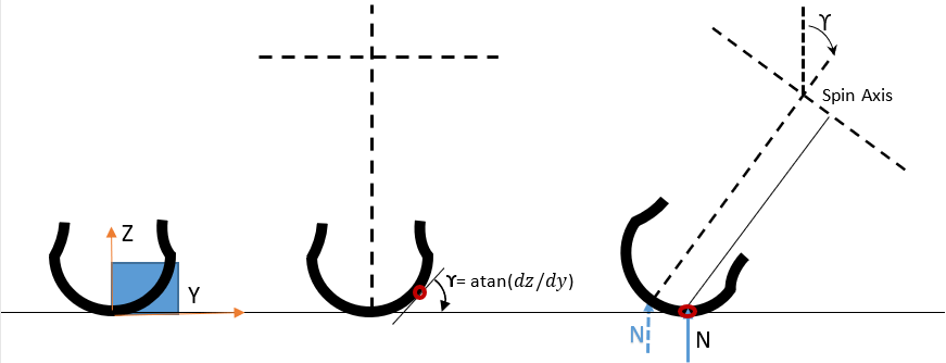 Figure 1. From left: Tire cross section data needed for contact point evaluation | Tire at 0 camber angle | Tire at ϒ camber angle
