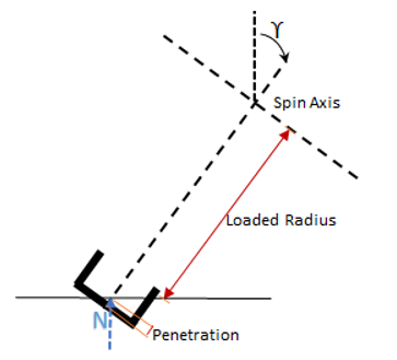 In case the PA1 and PA2 parameters are not found, then the tire is assumed to be a rigid disc of a radius equal to the unloaded radius and the contact patch length is evaluated as follows: