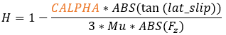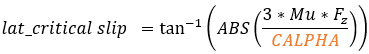 The same critical lateral slip used in the Fy calculation is also used in determining the condition of the tire.
