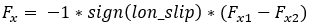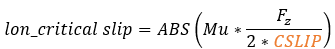 The calculation of the longitudinal force (Fx) depends on the longitudinal slip condition of the tire. Typically, there are two distinct slip states: an elastic deformation state (where the longitudinal slip is less that a critical slip value) and a pure sliding state (where the longitudinal slip exceeds the critical slip value).The critical longitudinal slip is calculated below: