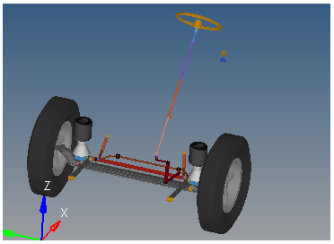 Front solid axle suspension has a suspension system for a vehicle frame consisting of a solid front axle, to the ends of which the steerable front wheels are mounted. Front suspension include parts like steering subsystems, springs, dampers, stabilizer bar, knuckles, tire rods, wheels, wheel hub and bumpers. The front solid axle suspension built through the Assembly Wizard is displayed in the MotionView window.