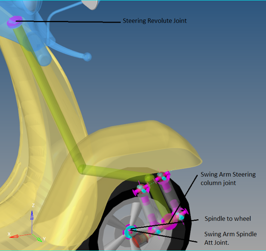 | Steering Swingarm Attachment Joint | Revolute | Swing Arm | Steering Column | Swingarm steering Att Point | |