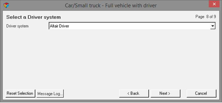 1. Select the Full vehicle with advanced driver option from the Model Type window and click Next.
