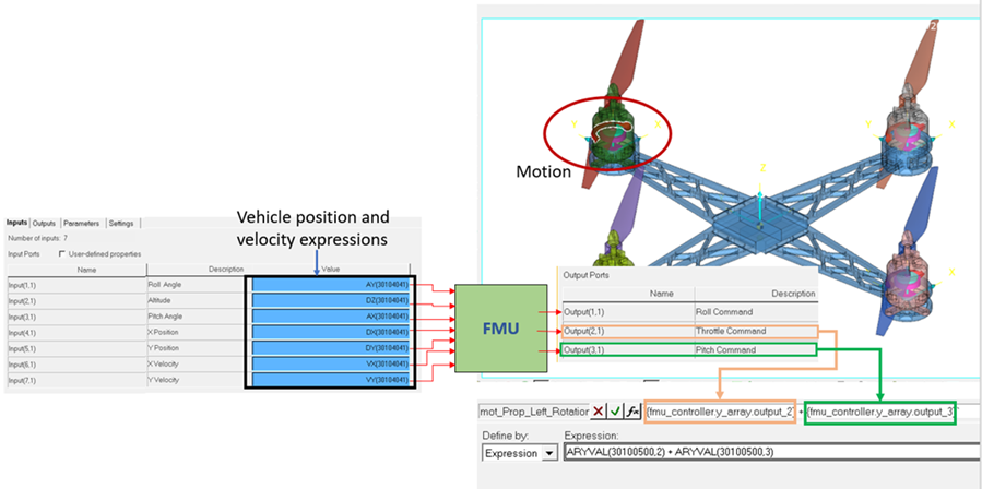 Use the FMU tool to add a Functional Mock-up Unit and connect it to a multi-body model.