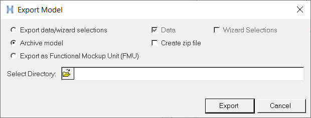 - To archive a model or export as an FMU, the model first needs to be saved before attempting an archive.