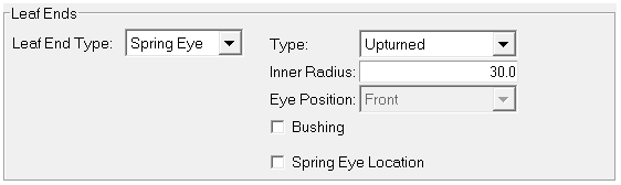 Use Leaf Ends to specify the type of spring ends that you want. There are three types: Eyes, Slipper-ends, and None.